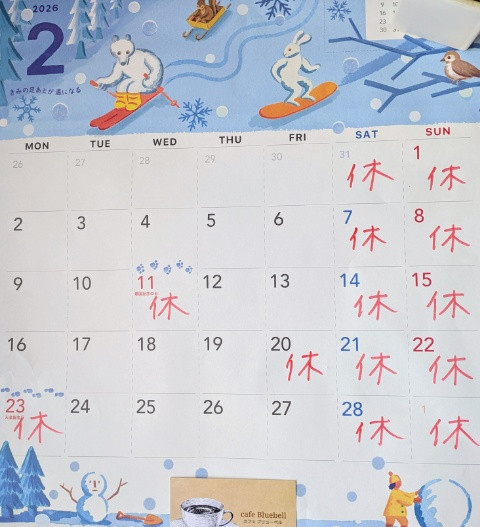2月営業カレンダーを更新しました